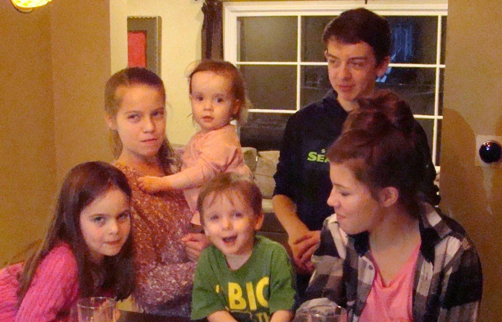 Here's big brother, who's almost always in a good mood, wearing his new birthday hoodie. Looks like size 3 fits pretty well.